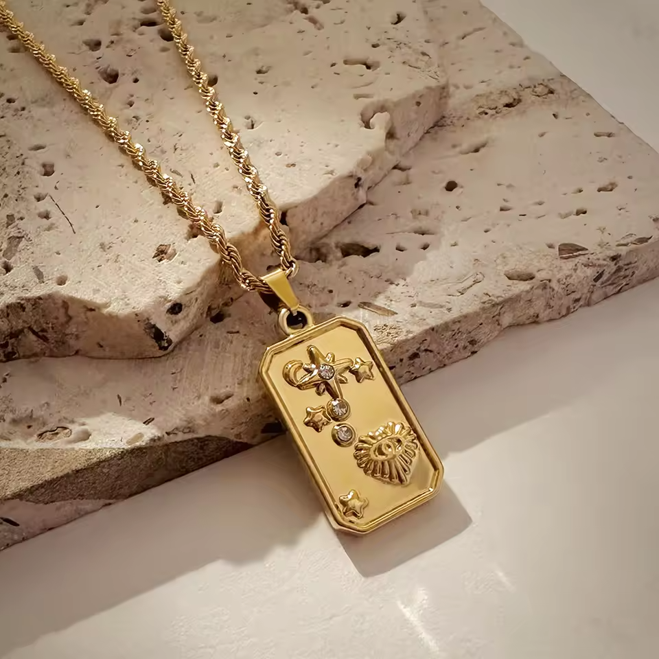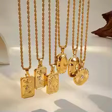 Vintage Glossy Gold Plated Hammered Irregular Pendant Neckalce for Women Moon Star Stainless Steel Twist Chain Necklaces Jewelry